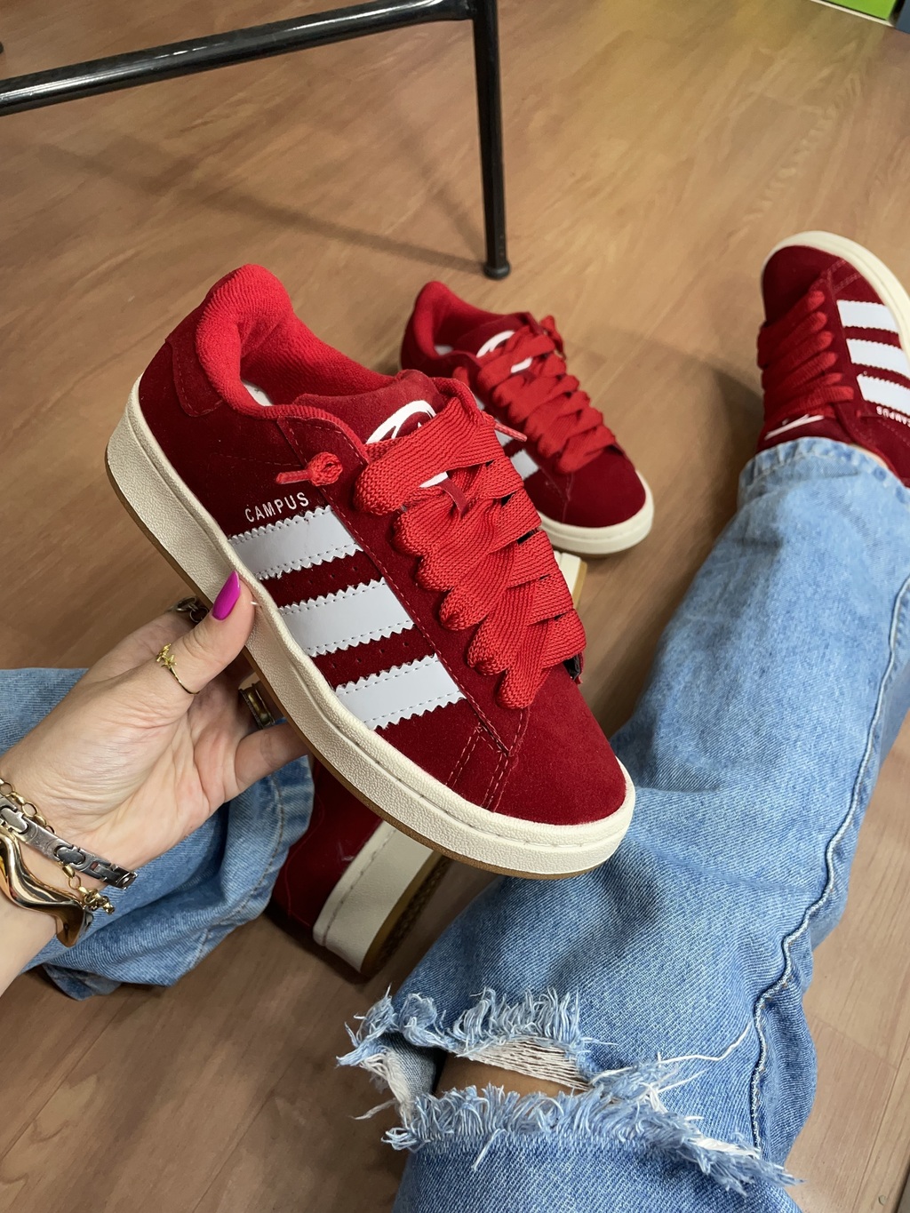 O Tênis Adidas Campus é um modelo clássico com design simples e elegante, geralmente feito de camurça. É confortável, com forro de tecido macio e entressola de borracha vulcanizada. Possui uma sola de borracha com padrão herringbone para boa aderência. As icônicas três listras da Adidas estão presentes nas laterais. É versátil, combinando bem com vários estilos de roupa, e é popular tanto para moda urbana quanto para uso diário.
